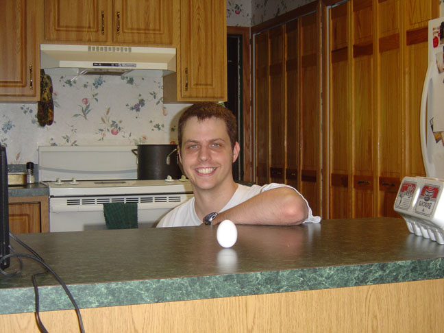 The funniest part was that it was actually the day before the first day of summer. But we could only get this one egg to stand up and we could not get it to stand up again when I accidentally knocked it over.